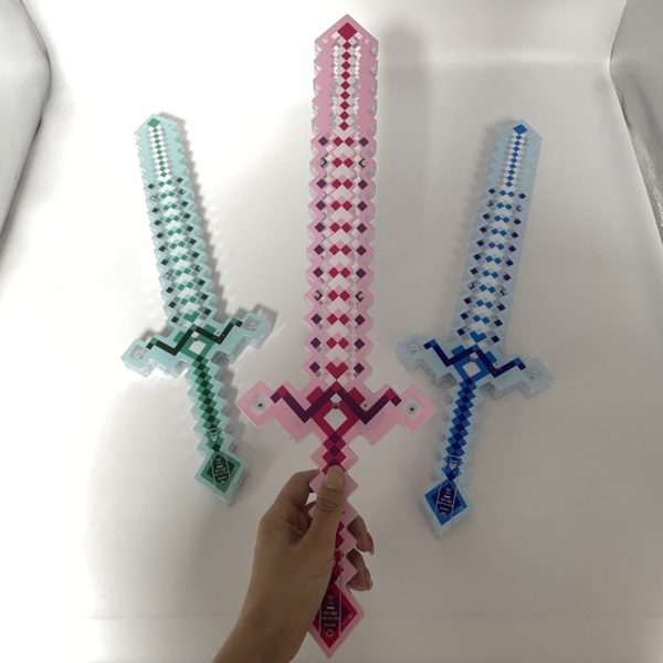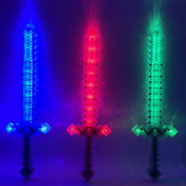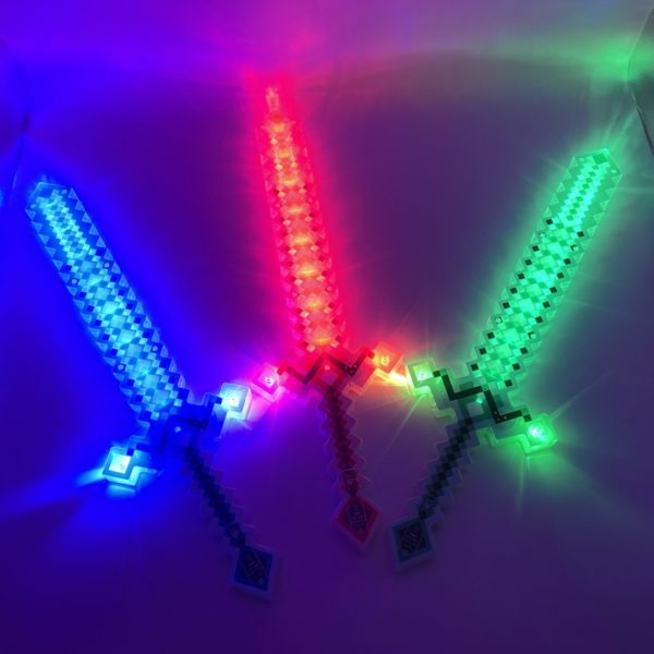 NEU LED LEUCHT SCHWERT Ritter Lichtsäbel mit Klingensound mine craft style