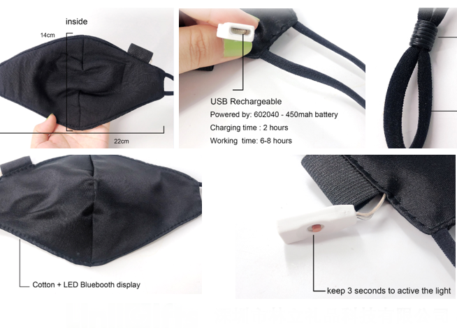 Led Display Programmable Bluetooth APP Controlled Rechargeable Mask Music Party - multicolor
